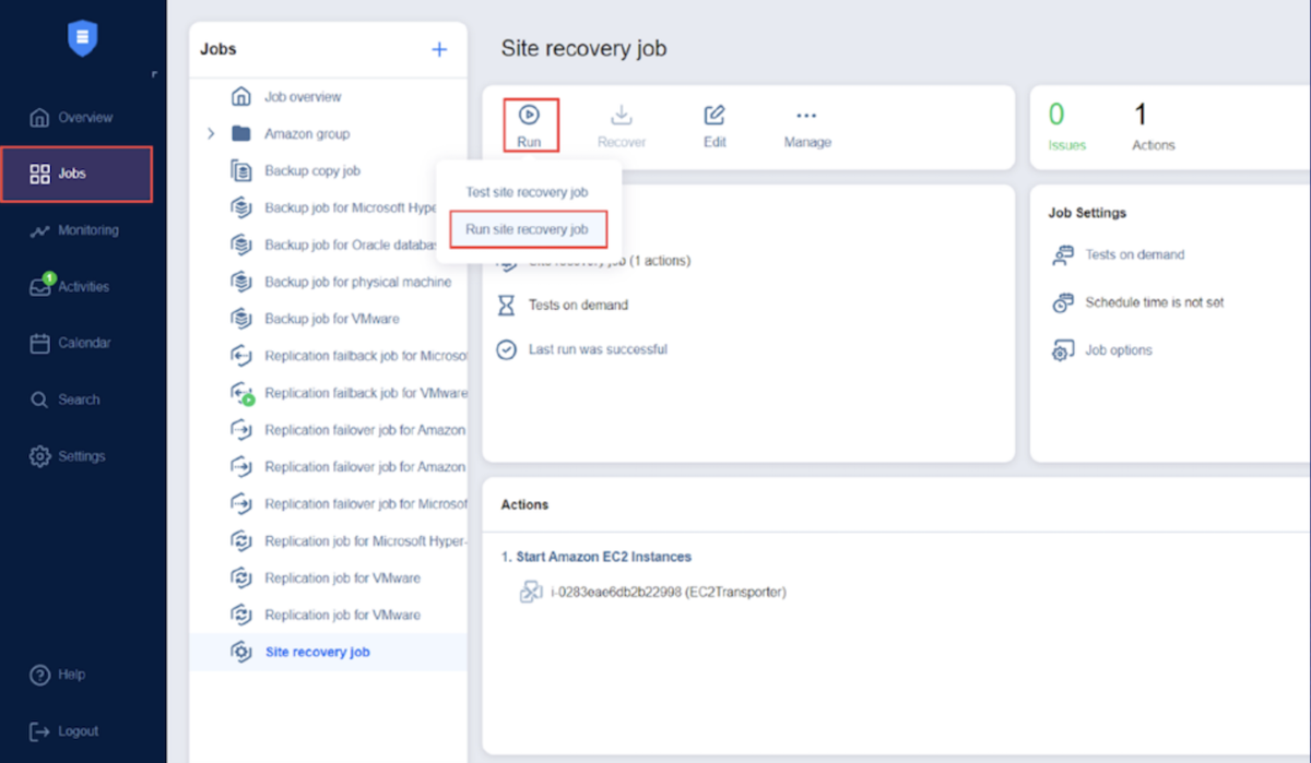 Manage backup, anti-ransomware protection, VM monitoring, and disaster recovery automation all in one place for easy management and improved data protection visibility.
